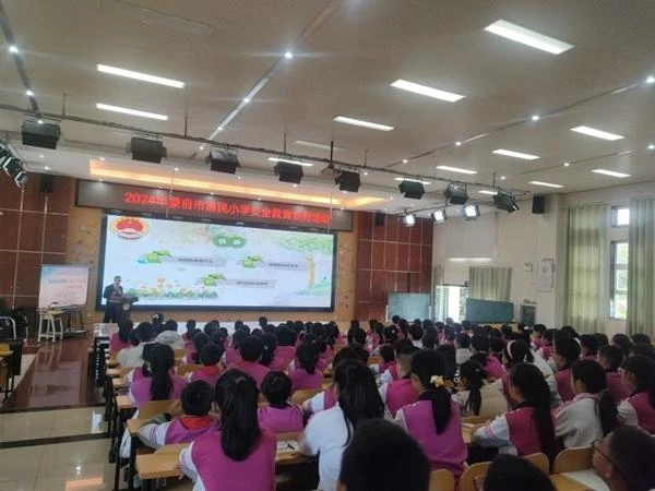 在惠民小学,市公安局为学生们带来了一场以“利剑护蕾 法护成长”为主题的法治宣传教育课。课堂上,民警向同学们普及《中华人民共和国未成年人保护法》相关知识,与同学们亲切互动问答,用通俗易懂的语言讲解鲜活生动的案例,引导学生明辨是非,提高自我保护意识,自觉抵制违法犯罪行为,当遇到不法侵害时,学会用法律武器保护自身安全,维护自身合法权益。