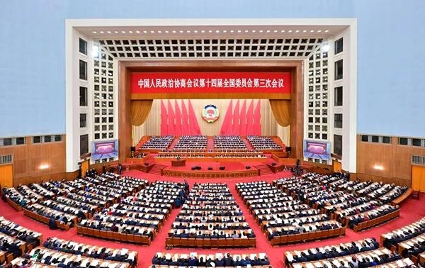 3月4日下午,中国人民政治协商会议第十四届全国委员会第三次会议在北京人民大会堂开幕。新华社记者 翟健岚 摄