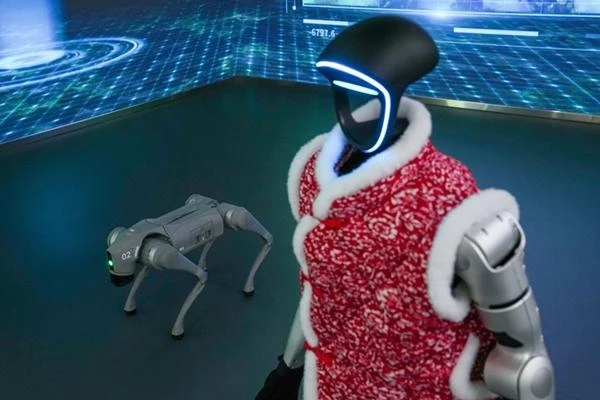 在北京市机器人产业园(亦庄),“机器人大世界”的应用场景示范区展出的宇树公司的机器狗和机器人(2025年2月24日摄)。新华社记者 鞠焕宗 摄