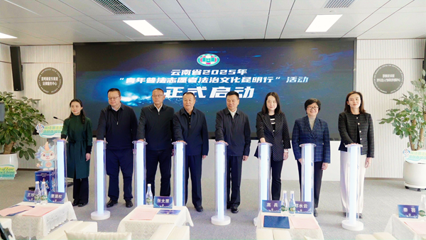 省法学会会长张太原出席启动仪式并宣布活动启动。省法学会常务副会长董国权、省司法厅副厅长高兵、共青团云南省委副书记王珍珍、昆明市人大常委会副主任邓水云等领导出席活动并讲话,昆明市委政法委、市法学会领导致辞。昆明市法学会普法IP形象“法小豸”绘声绘色地介绍了昆明市网络普法创新成效。出席活动的领导同时按下启动装置,宣布2025年“青年普法志愿者法治文化昆明行”活动启动。