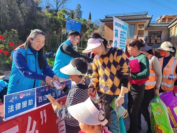 近日,昆明市西山区法学会联合西山区普法办、区司法局、团结司法所等单位在团结街道雨花社区大墨雨民族文化广场开展“春节欢乐颂·墨雨迎客来”暨2025年科技文化卫生“三下乡”普法宣传活动,丰富基层群众法治文化生活,促进乡村法治建设,让法治力量惠及更多民生。