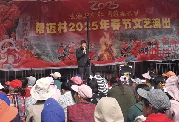 近日,普洱市景东县法学会联合县司法局在文龙镇帮迈村举办“法治迎新春 同筑振兴梦”群众性法治文艺演出暨趣味答题活动,借助喜庆“年文化”搭建“学法舞台”,将法律知识与新春祝福传递给群众。