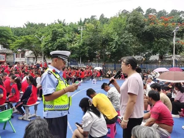 交管大队民警通过展示警用摩托车、交通指挥手势演示、安全头盔正确佩戴教学等互动环节,让学生们在实践中学习交通安全知识。活动现场还设置了答疑区,民警耐心解答家长、学生提出的问题,切实提升学生“知危险、会避险”的能力。