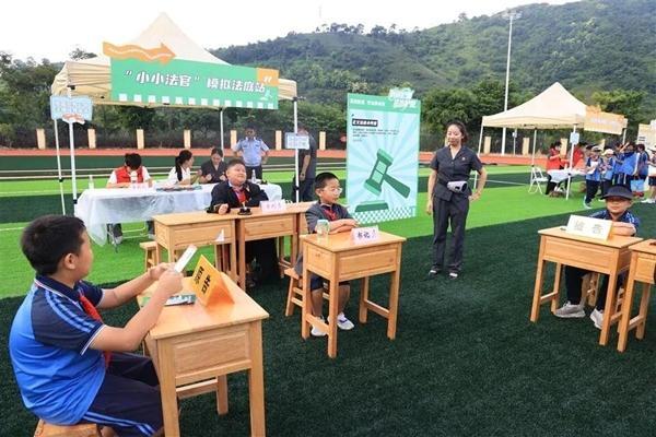 本次活动以户外游园会的形式开展,设置了“利剑护蕾”安全盾牌站、“法眼明辨”禁毒防线站、“小小法官”模拟法庭站等9个主题普法互动体验站。学生持“法治护航护照”通过闯关卡的方式,自由参与各站点活动,完成挑战即可获得相应积分,积分集齐后可兑换小礼品。