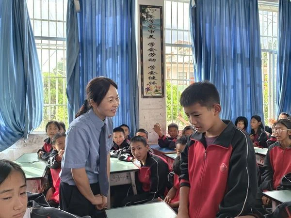 活动中,州委政法委、州教育体育局、州法学会联合组建法学法律专家团队,深入全州地处边境的各所学校开展法治宣传系列活动,邀请相关法学法律专家或实务部门专家,为学生开展有针对性的法律知识讲座、辅导,普及与学生生活息息相关的法律知识,通过以案释法,提高学生的法治意识和自我保护能力。其中,云南省高级人民法院三级高级法官杨丽娟、德宏州人民检察院(未成年人检察工作团队)检察官刘波和杨丹,分别围绕“三个认识,学会保护自己”“有效防范校园欺凌事件的发生”及“让法治之光照亮边陲校园”三个主题,为七所边境学校9000余名师生带去了一堂堂精彩纷呈的法治课,从如何有效防范校园欺凌事件的发生、刑法距离大家有多远等话题展开,用身边鲜活的事例以案释法,给学生们上了一堂别开生面的法治课,活动内容丰富、生动有趣,现场氛围活跃。检察官杨丹以“揉纸团”游戏打造沉浸式普法课堂——将一张白纸反复揉捏至褶皱不堪、无法复原,以此类比校园欺凌对受害者的深远伤害。这种具象化的教学方式,让“防范校园欺凌”的抽象主题变得直观可感。近千名学生在动手体验中深刻理解了校园欺凌的伤害如揉皱的纸般难以逆转,从而筑牢对欺凌行为的防范意识与法治敬畏。