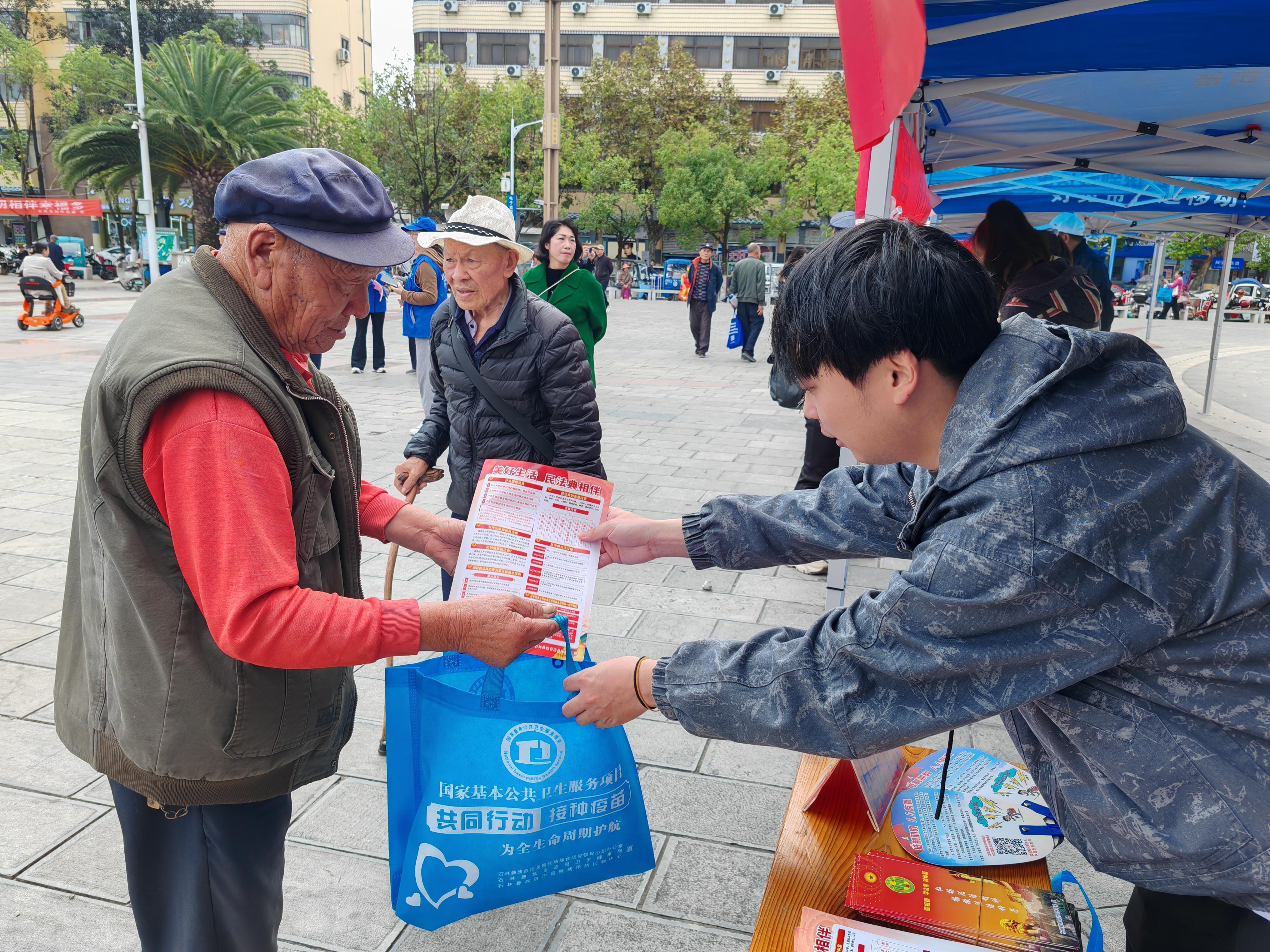 为进一步加强老年人权益保障,增强老年群体法律意识和自我保护能力,10月24日,昆明市石林县法学会联合石林县公安局、县人民检察院、县人民法院等10个部门,在石林县双龙广场开展老年人权益保障法治宣传活动。