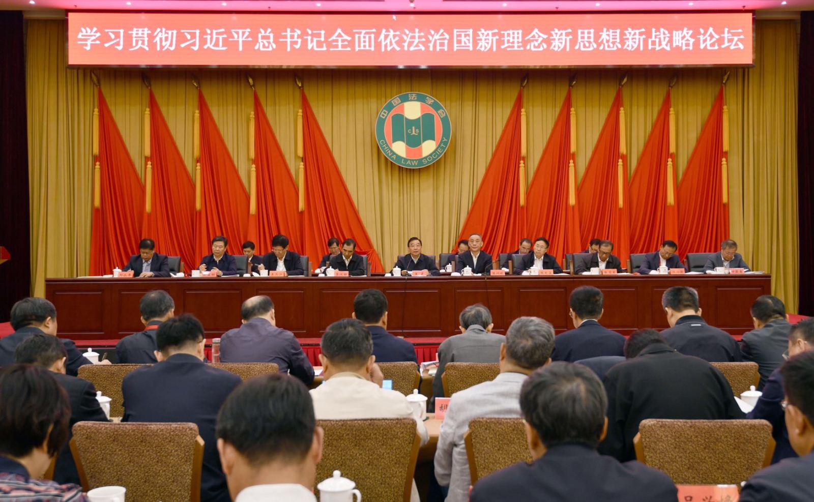 10月11日,中共中央政治局委员、全国人大常委会副委员长、中国法学会会长王晨在京出席中国法学会举办的学习贯彻习近平总书记全面依法治国新理念新思想新战略论坛并作主旨演讲。(戎珊 摄)