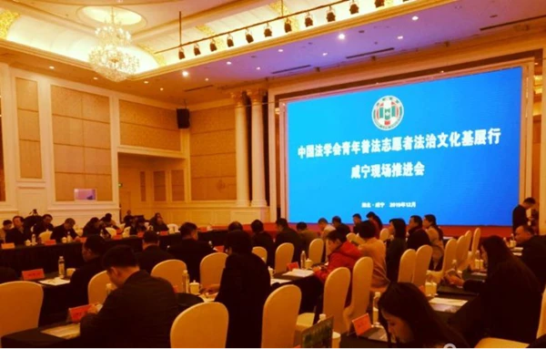 12月2日至3日,中国法学会青年普法志愿者法治文化基层行咸宁现场推进会在湖北省咸宁市举行,中国法学会党组成员、副会长张苏军,机关党委(人事部)副主任王国升,司法部、团中央的相关领导以及湖北省、天津市、浙江省等11个省市(区)法学会的相关领导共70余人参加了会议。我省法学会专职副会长兼秘书长彭国军参加了推进会并作了大会工作经验交流发言。