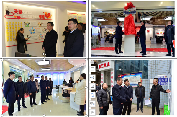 仪式结束后,赵祖莹、罗朝峰等一行在水富市一中参观了法治教育基地,参加了云富综治中心“云南省法学会工作联系点”揭牌,并到云富综治中心、水富市法学会疑难案件研判中心、水富市“两江”综合执法大队和水富市党群法律服务中心调研指导工作。