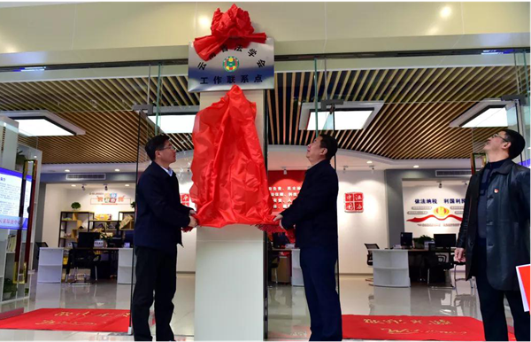 云南省法学会常务副会长赵祖莹,昭通市委常委、政法委书记、宣传部部长罗朝峰为“云南省法学会工作联系点”揭牌。