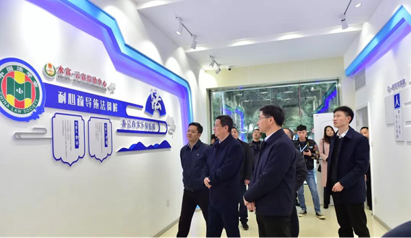 揭牌仪式结束后,赵祖莹、罗朝峰以及出席揭牌仪式领导实地参观了云富综治中心暨法学会疑难案件研判中心,在云富综治指挥中心观看了社会治理“六化”模式的演示和水富城市宣传片,并对今后如何开展社会治理工作提出了很好的意见和建议。