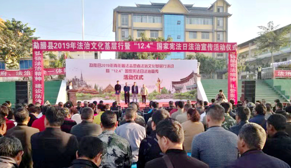 12月4日上午,在全国第六个国家宪法日来临之际,由云南省法学会、省司法厅主办,西双版纳州法学会、州司法局,勐腊县委、县政府承办,勐腊县委政法委、县司法局、县普法办,磨憨镇党委、政府协办的2019年“云南省青年普法志愿者法治文化基层行”活动暨“12·4”国家宪法日宣传活动 在勐腊县磨憨镇隆重举行。