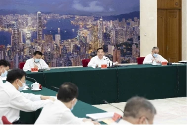 7月5日,中共中央政治局委员、全国人大常委会副委员长、中国法学会会长王晨在京主持召开中国法学会会长会议,学习贯彻习近平总书记在庆祝中国共产党成立100周年大会上的重要讲话精神。戎珊 摄