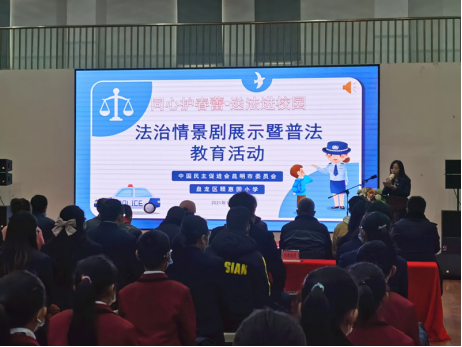 受中国民主促进会昆明市委员会和盘龙区颐惠园小学的邀请,1月20日,省法学会派员参加了“同心护春蕾·送法进校园”法治情景剧首发式。
