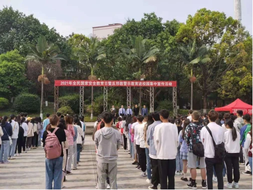 4月15日上午,临沧市委政法委、市公安局、市法学会到滇西科技师范学院开展全民国家安全教育日集中宣传,活动以展板宣传、发放宣传资料、现场解答的形式,重点从反间谍、防范非法社会组织、反恐怖主义、生物安全、网络安全等方面开展宣传,共有200余名师生参加了活动,有效提高了在校师生维护国家安全、识邪反邪、防范非法组织侵害的意识。