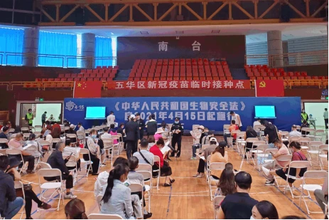 2021年4月15日,《中华人民共和国生物安全法》正式生效施行,针对人民群众对涉及传统安全和非传统安全的概念、法律知识的需求,紧密结合当前新冠肺炎疫情防控形势,依托在市体育馆新改造建成的新冠疫苗“方舱”接种点,利用注射疫苗以后需要留观的30分钟时间,循环播放《国家安全宣传片》和发放国家安全宣传资料,使市民了解到日常工作生活中哪些方面涉及国家安全、哪些行为会危害国家安全,遇到危害国家安全情况该怎么做等专题宣传。既接种了疫苗,又普及了维护国家安全知识,起到了一加一大于二的宣传效果。
