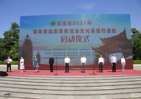 省司法厅、共青团云南省委、昆明市、西山区有关负责人,省法学会、昆明市法学会、西山区法学会组织的250余名青年普法志愿者参加启动仪式。