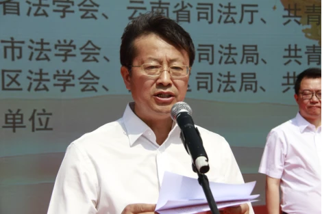 2021年5月19日上午,云南省“2021年青年普法志愿者法治文化基层行”启动仪式在昆明举行。省法学会、省司法厅、共青团云南省委联动昆明市法学会、西山区法学会共同开展了现场法治宣传活动。省法学会专职副会长兼秘书长李绍才出席启动仪式,给省、州(市)、县(区、市)三级志愿者队伍代表授“青年普法志愿者法治文化基层行”队旗并讲话。