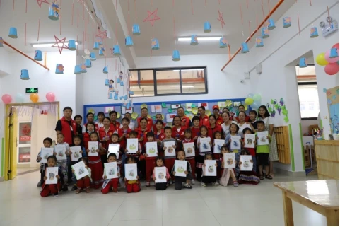 平安怒江志愿者们与和谐幼儿园小朋友合影