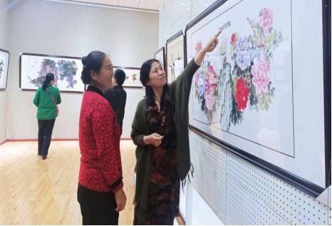 书画协会老师为现场群众讲解书画作品