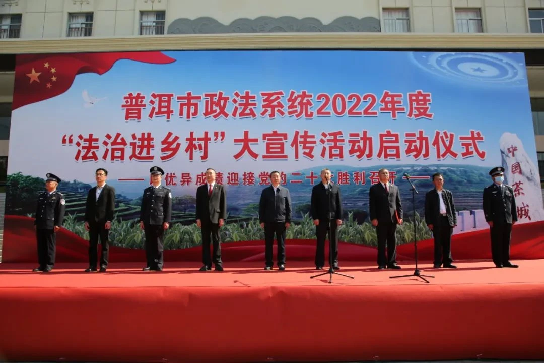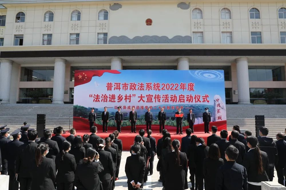 近日,普洱市政法系统2022年度“法治进乡村”大宣传活动启动仪式在普洱市检察院国旗广场举行。市委常委、市委政法委书记、市法学会会长尹凌云出席活动并讲话,市政府副市长、市公安局局长朱曦明宣布活动启动,市中级人民法院院长李红云出席启动仪式,市检察院检察长李世清主持仪式。