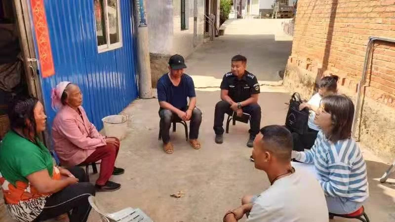 法治宣传组人员与村民零距离进行交流和法治宣传