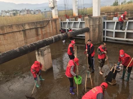 在澄江市法学会会长罗一松的带领下,志愿者们发扬了不怕脏不怕累的吃苦耐劳精神,分工合作,对河道水面白色垃圾、河面青苔和废弃农作物等污染水体的漂浮物进行了清理,同时清除了河道两岸堆积的垃圾与杂物,并将垃圾进行集中分类后运往附近的垃圾场。