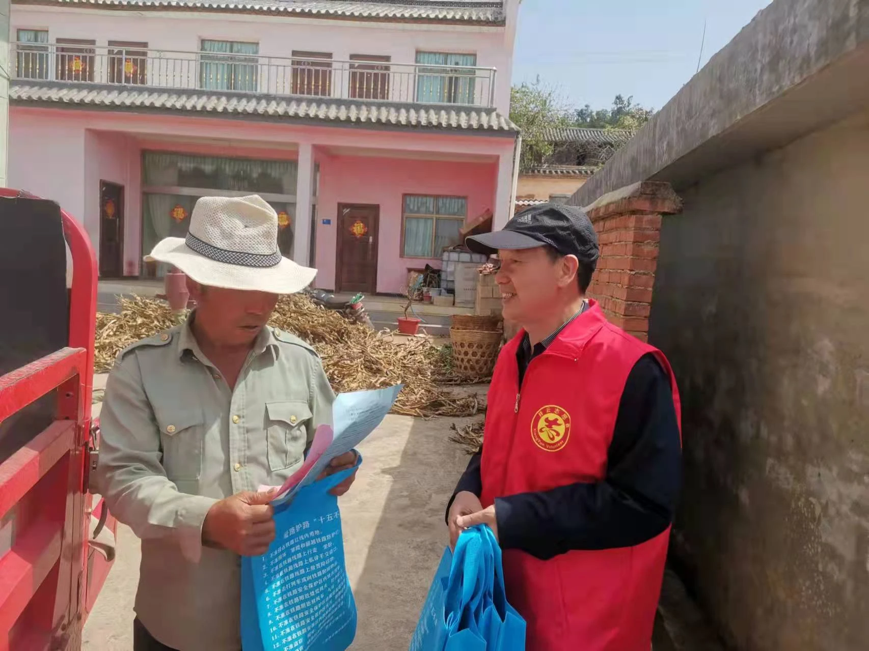 在农户家中,干部职工与群众面对面拉家常,了解群众生产生活情况,向群众介绍民族团结示范创建、群众安全感满意度提升、见义勇为、铁路护路联防、护林防火等知识,征求群众对基层社会治理意见建议。同时,与村组干部进行交谈,了解辖区社会治安、产业发展等情况。本次宣传活动,共发放《祥云县民族团结进步创建工作应知应会手册》100余册,发放见义勇为宣传折页、群众安全感满意度提升等宣传资料500余份,发放民族团结宣传布袋、帽子等宣传物品200余份。