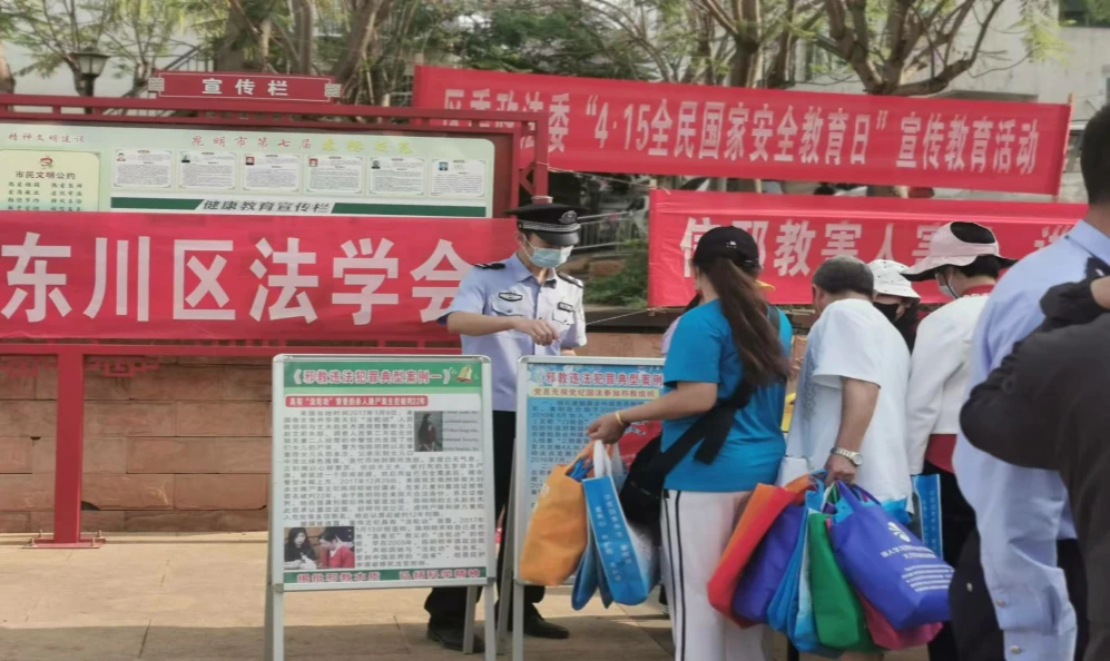 4月15日,昆明市东川区法学会联合区委政法委、区公安局、区司法局等20家法学会员单位在政法广场开展主题为“树牢总体国家安全观,感悟新时代国家安全成就,为迎接党的二十大胜利召开营造良好氛围”的国家安全宣传活动。