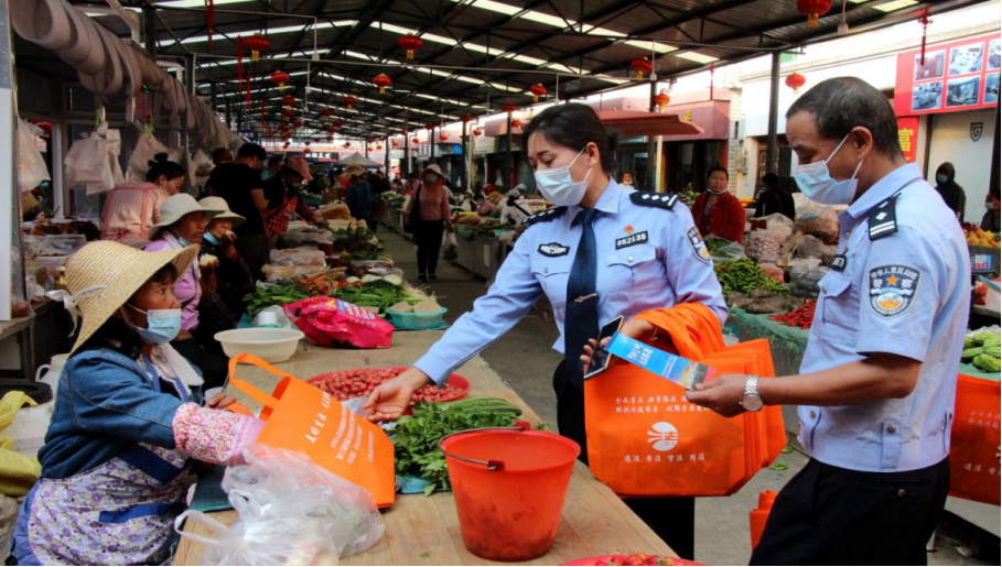 为树牢总体国家安全观,推动国家安全法治宣传教育深入开展,增强全民国家安全意识和法治意识,临沧市永德县法学会在4月15日第七个全民国家安全教育日期间,联合多个部门采取多种形式深入社区、企业、集市、娱乐行业等不同场所宣传国家安全法、民法典、禁毒法、传染病防治法等法律法规,营造良好的法治氛围。