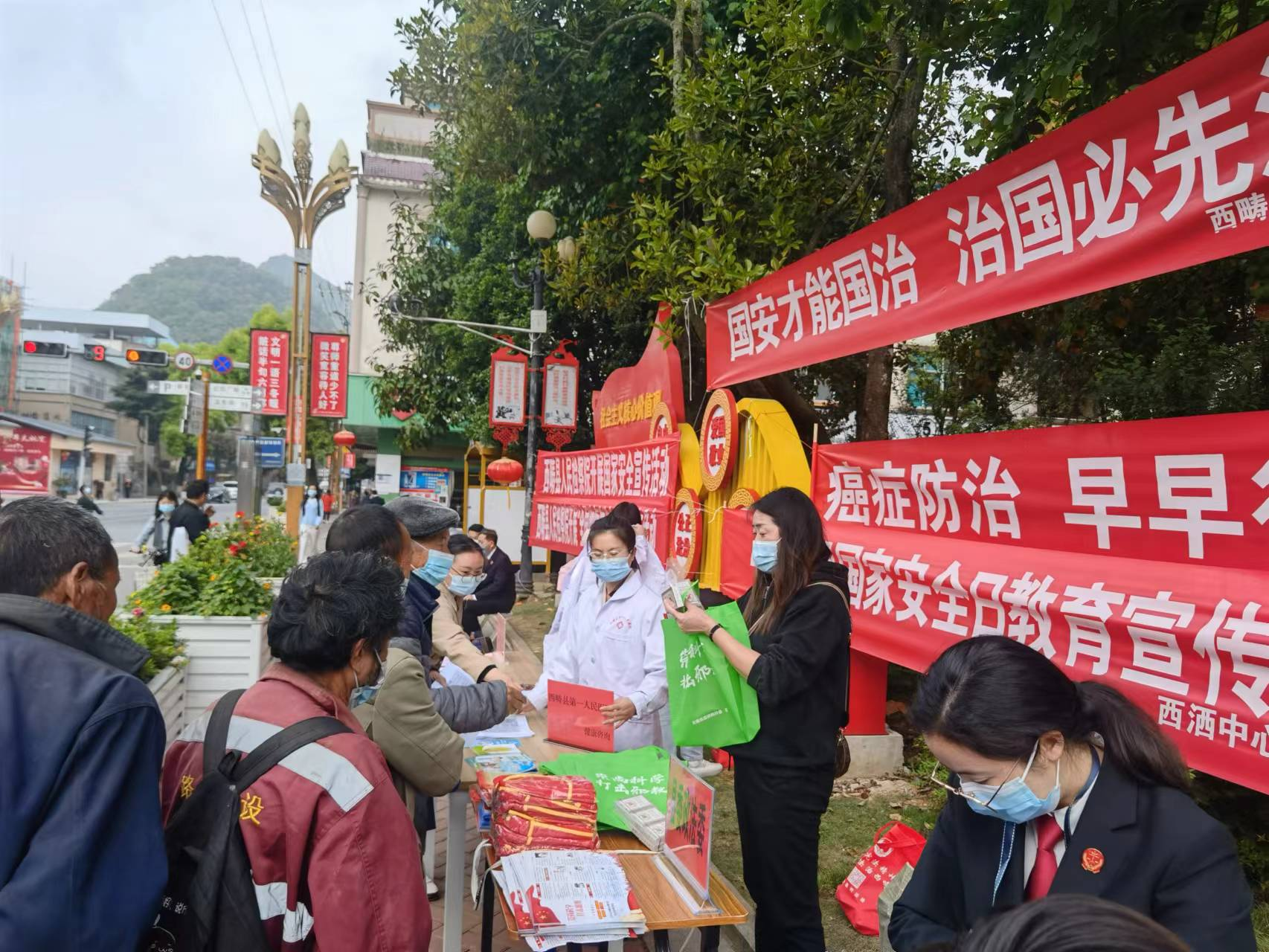 4月12日,文山州西畴县法学会上街开展国家安全和反邪警示教育宣传活动。