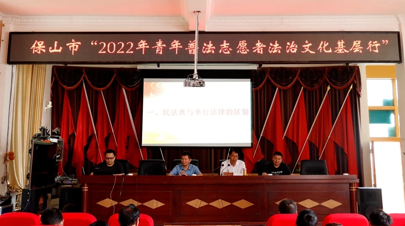 7月28日,保山市法学会、保山市隆阳区法学会在水寨乡联合开展“青年普法志愿者法治文化基层行”活动暨“民法典进农村”普法宣传。水寨乡村组干部、党员群众代表60余人参加。