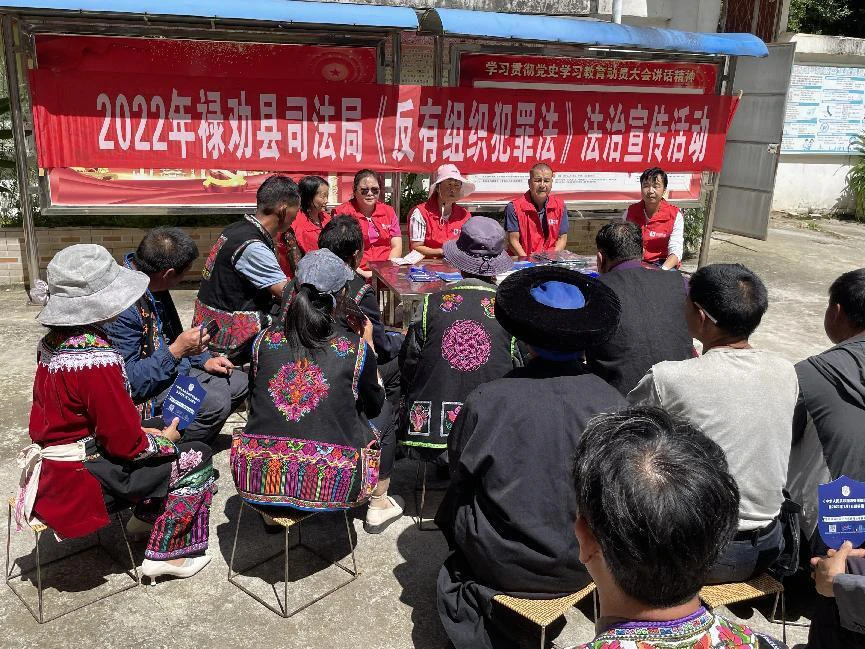 为提升禄劝县群众对《中华人民共和国法律援助法》《反有组织犯罪法》知晓率和社会影响力,增强人民群众防范反有组织犯罪的能力和水平,8月8日,昆明市禄劝县法学会、禄劝县司法局和转龙司法所组成普法志愿者深入转龙镇大水井村委会组织开展昆明市2022年少数民族法律援助志愿服务活动和《反有组织犯罪法》进村法治宣传活动。