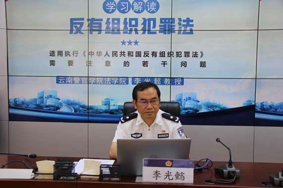 本次培训邀请云南省警官学院法学院院长、云南省法学会刑法研究会副会长李光懿教授为参训领导干部作“学习解读反有组织犯罪法”专题辅导。李光懿围绕扫黑除恶专项斗争成效以及《中华人民共和国反有组织犯罪法》的立法背景、立法意义、主要框架、执行需注意的若干问题等方面进行讲授。通过李光懿的讲解,进一步加深了参训领导干部对《中华人民共和国反有组织犯罪法》的理解,为寻甸县常态化推进扫黑除恶工作提供了保障。