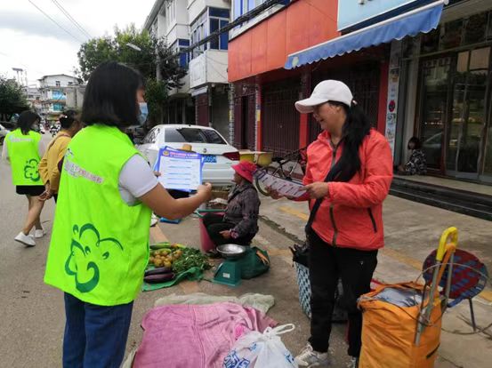 在此次宣传活动中,青年普法志愿者充分利用早街摆摊,抓住老年人摊贩居多的优势,走进西翥街道大村社区早街,以“赶早街”的形式,向过往老年人进行法治宣传。