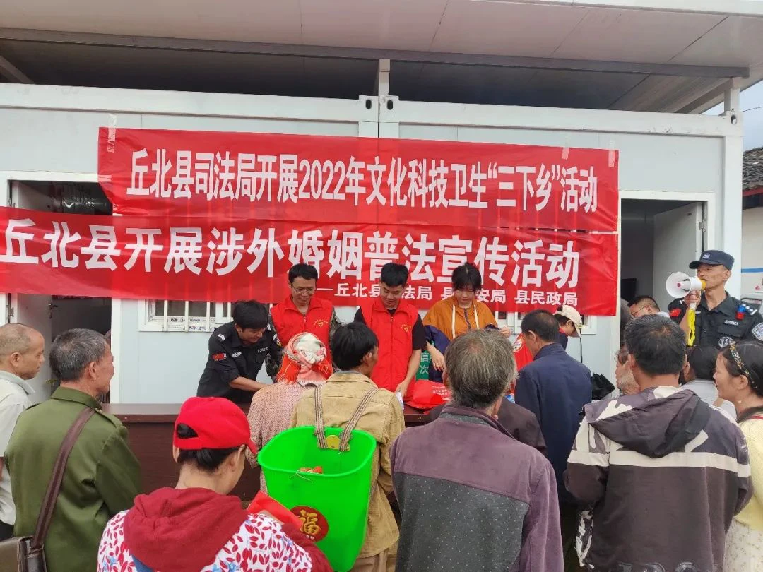 为深入推进文山州丘北县涉外婚姻普法宣传工作,丘北县司法局在加强各基层司法所窗口宣传涉外婚姻管理的同时,延伸普法触角,组织单位内部法学会会员走进平寨乡布凹村集市深入开展涉外婚姻普法宣传,以切实提高丘北县涉外婚姻家庭成员学法、守法、运用法律维护自身合法权益的能力,确保“八五”普法高质量推进。