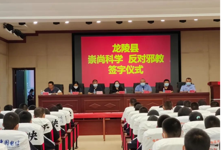 活动伊始,全体参会师生在“崇尚科学,反对邪教”条幅上签名,彰显出积极主动参与反邪教斗争的责任意识,用实际行动表达反邪教的决心和斗志。龙陵县委政法委反邪教工作人员余文贞从“什么是邪教”“邪教的种类”“邪教的危害”“如何防范邪教”等方面进行宣讲,通过反邪教知识问答等互动体验项目,让青少年了解邪教的危害,提高了青少年对邪教组织活动危害性的认识,增强了识别和抵制邪教活动的能力,筑牢了防范邪教向校园渗透的安全防线。
