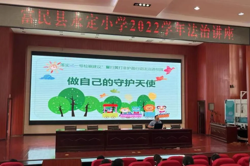 为提高未成年人的自我保护意识,保护未成年人的合法权益,10月24日,昆明市富民县法学会走进永定小学,为五年级的同学们上了一堂普法课。