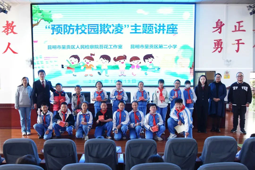 近日,昆明市呈贡区法学会联合区检察院“苔花工作室”检察人员走进呈贡二小,为同学们讲授了一堂生动的预防校园欺凌主题法治课。