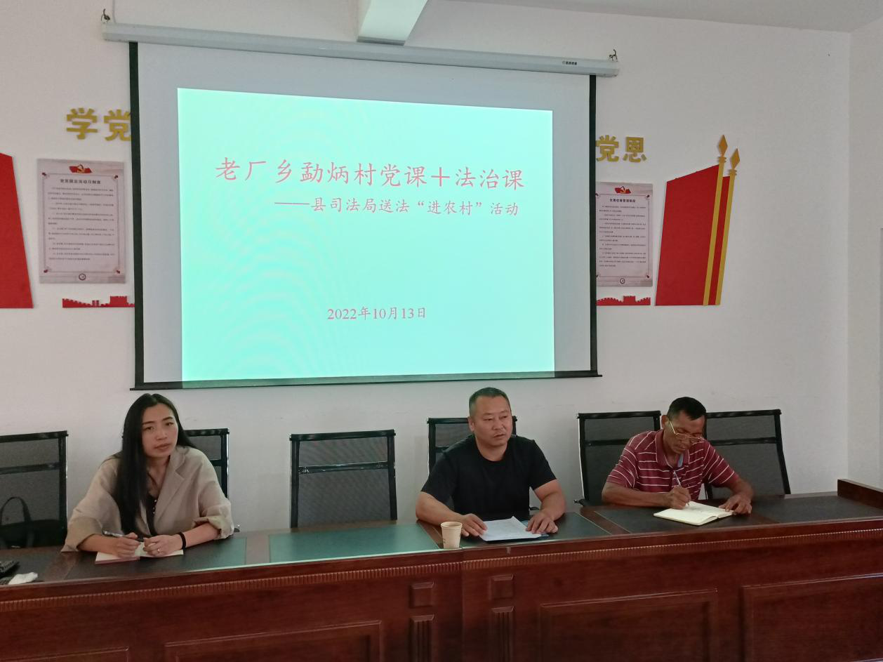 为进一步提升人民群众的法治意识和法治素养,近日,玉溪市新平县法学会会员单位组织县法学会会员到老厂乡勐炳村开展“党课+法治课”送法进乡村活动。法治课立足勐炳村实际,以彝汉双语相结合的“双语”模式,围绕《民法典》《土地管理法》《乡村振兴促进法》等法律法规,在加强乡村法治宣传教育、提高基层党员干部法治思维和依法办事能力、推进基层治理现代化和法治化等方面进行了详细的讲解,为勐炳村党员干部及群众,送上了一场别开生面的法治课。