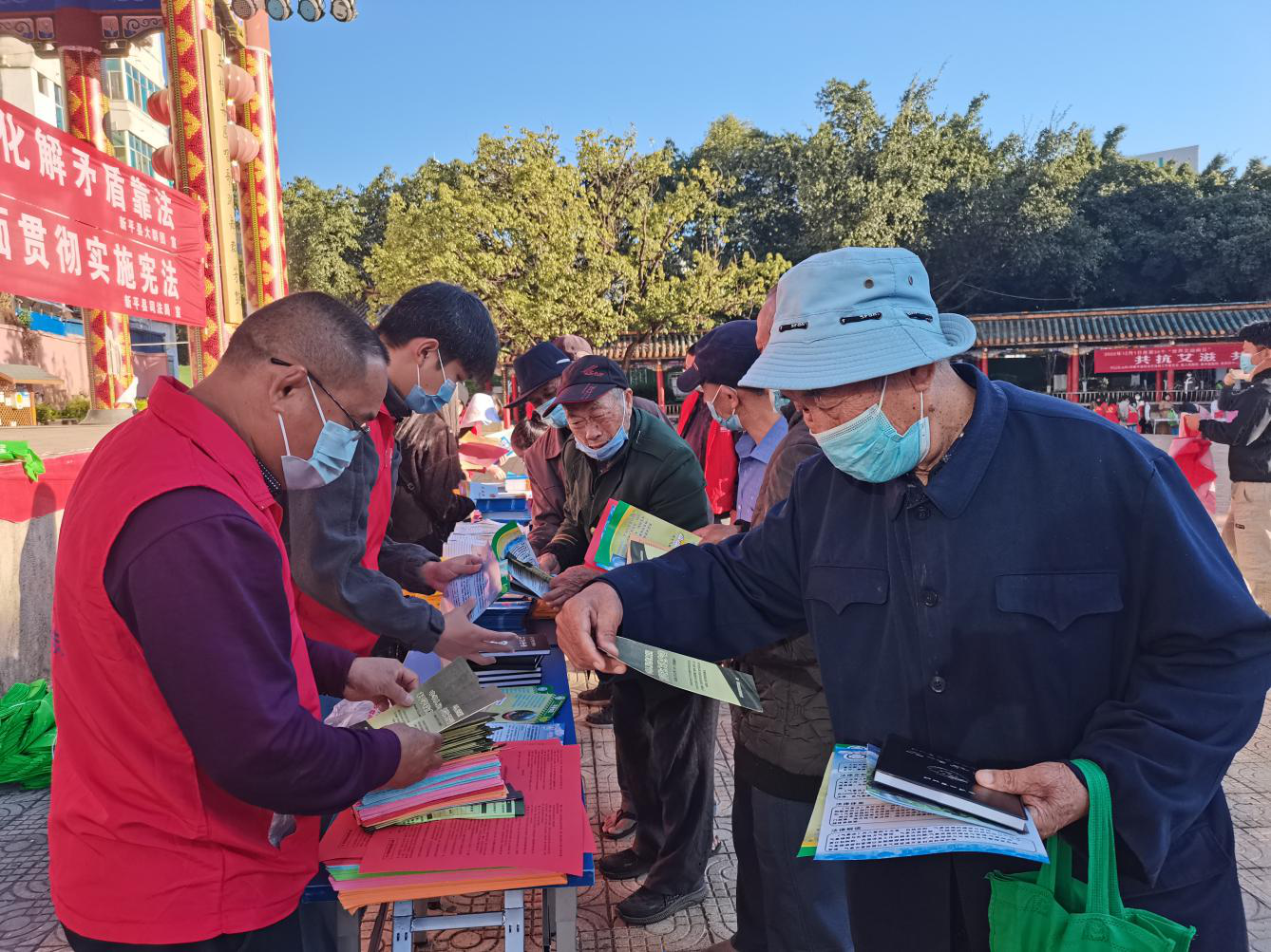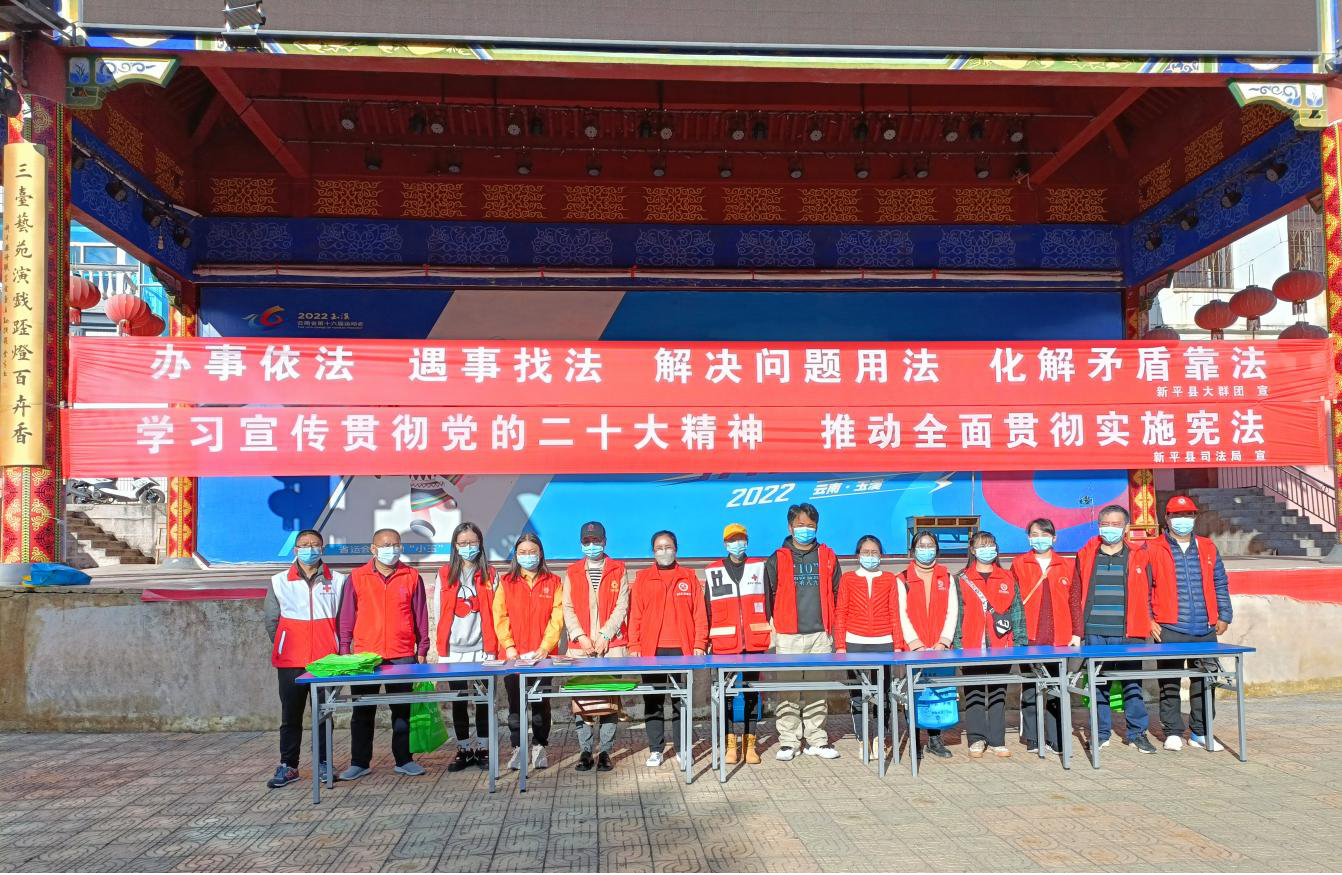 为深入宣传贯彻习近平法治思想,进一步弘扬宪法精神,树立宪法权威,优化法治化营商环境,12月1日,在第九个“国家宪法日”和第37个“国际志愿者日”来临之际,新平县法学会组织会员开展法治宣传活动。