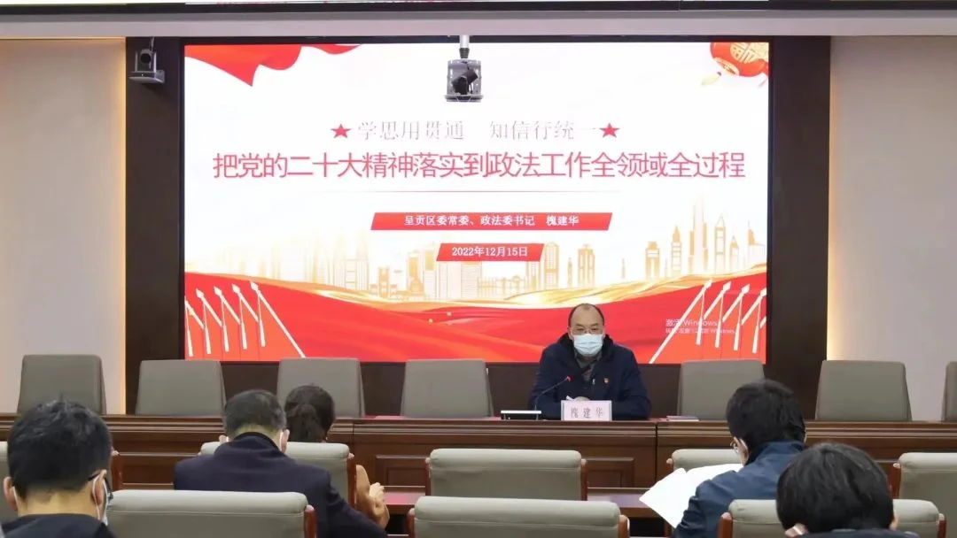 学思用贯通,落实党的二十大精神。12月15日呈贡区委常委、政法委书记、区法学会会长槐建华讲授题为“‘学思用贯通 知信行统一’——把党的二十大精神落实到政法工作全领域全过程”专题党课。槐建华从全面准确学习领会党的二十大精神、深刻学习领会新时代新征程的使命任务、将学习贯彻成果融入政法工作各领域三个方面进行分享交流。带领党员同志全面深刻学习领会党的二十大主题,回顾总结过去5年的工作和新时代10年的伟大变革,阐述了马克思主义中国化时代化新境界、中国式现代化的中国特色和本质要求等重要内容。