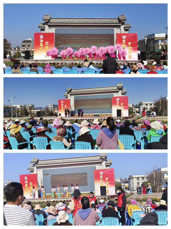 为进一步推动“八五”普法工作走向深入,提升法治宣传工作的社会满意度,提升辖区群众法治意识、法治素养,丰富群众文化生活,不断推进和加强尊法、学法、守法、用法的意识深入人心,扎实有效开展新时代法治宣传教育。近日,昆明市晋宁区法学会主办,扫黑办、区普法办联合承办的群众性法治文化系列活动在宝峰街道文化广场演出。