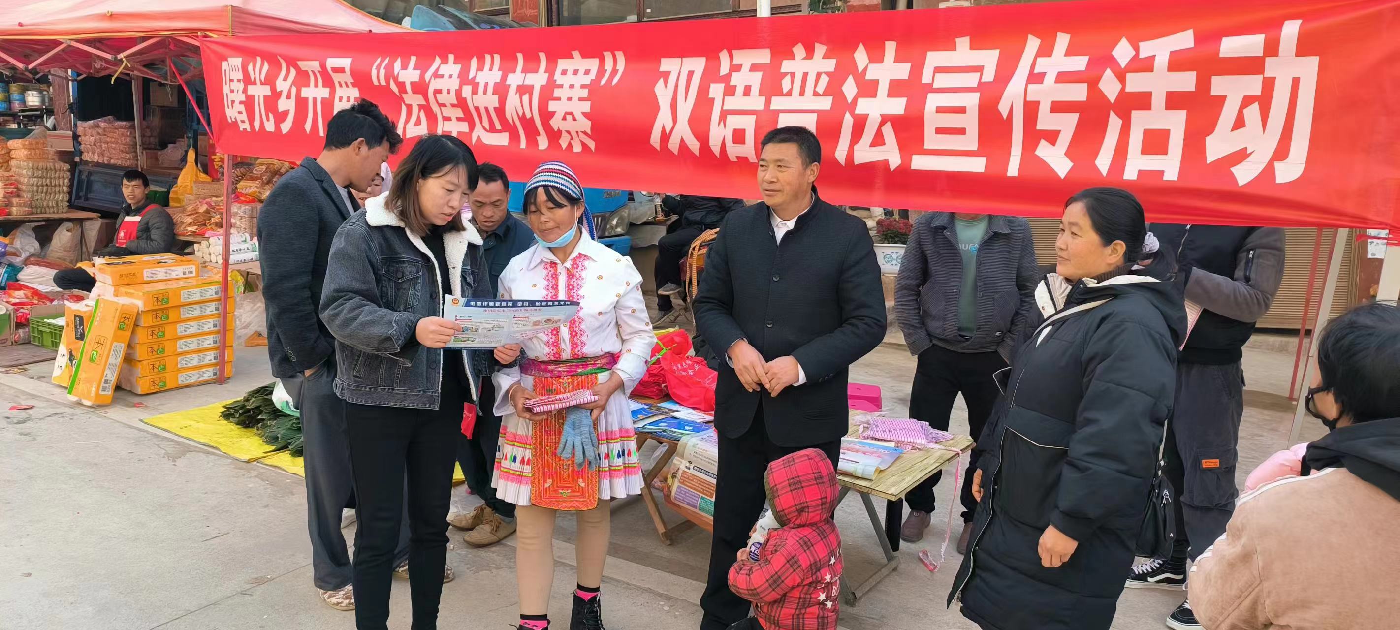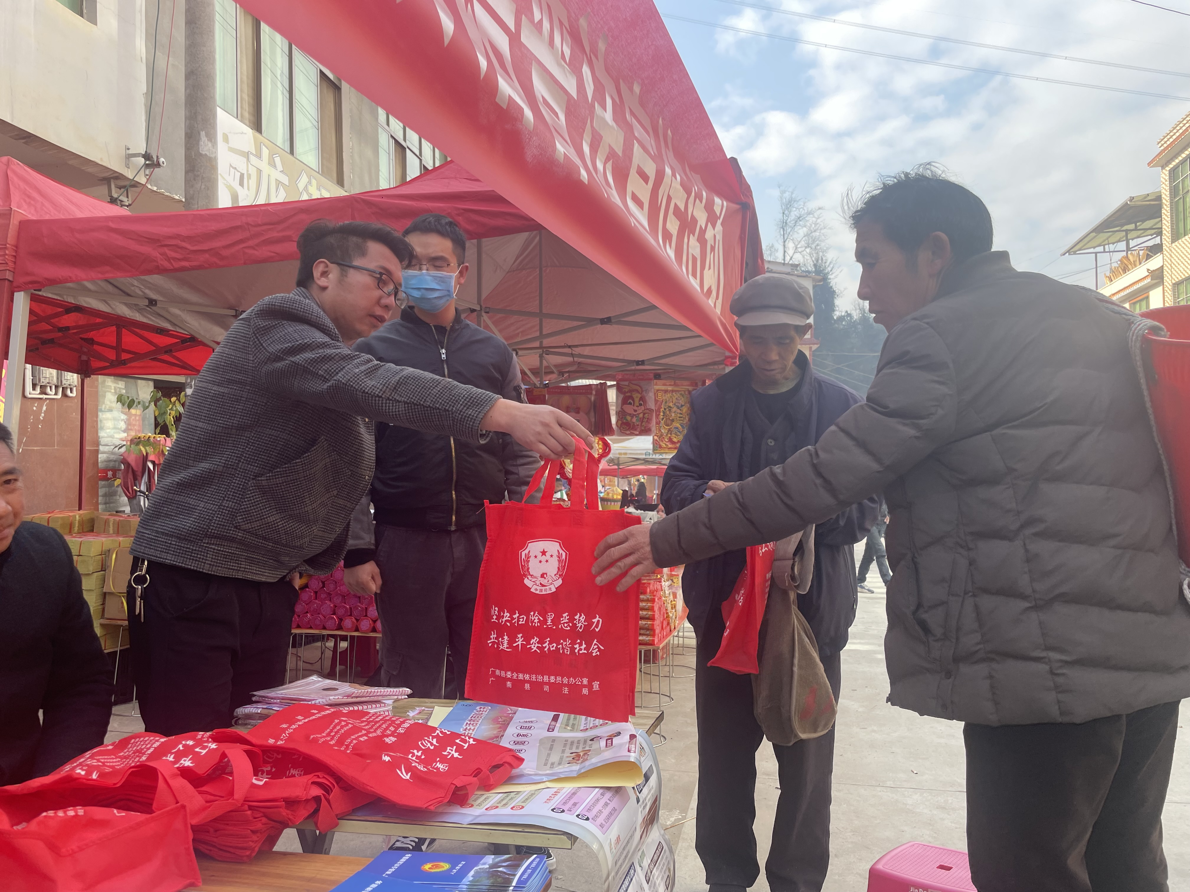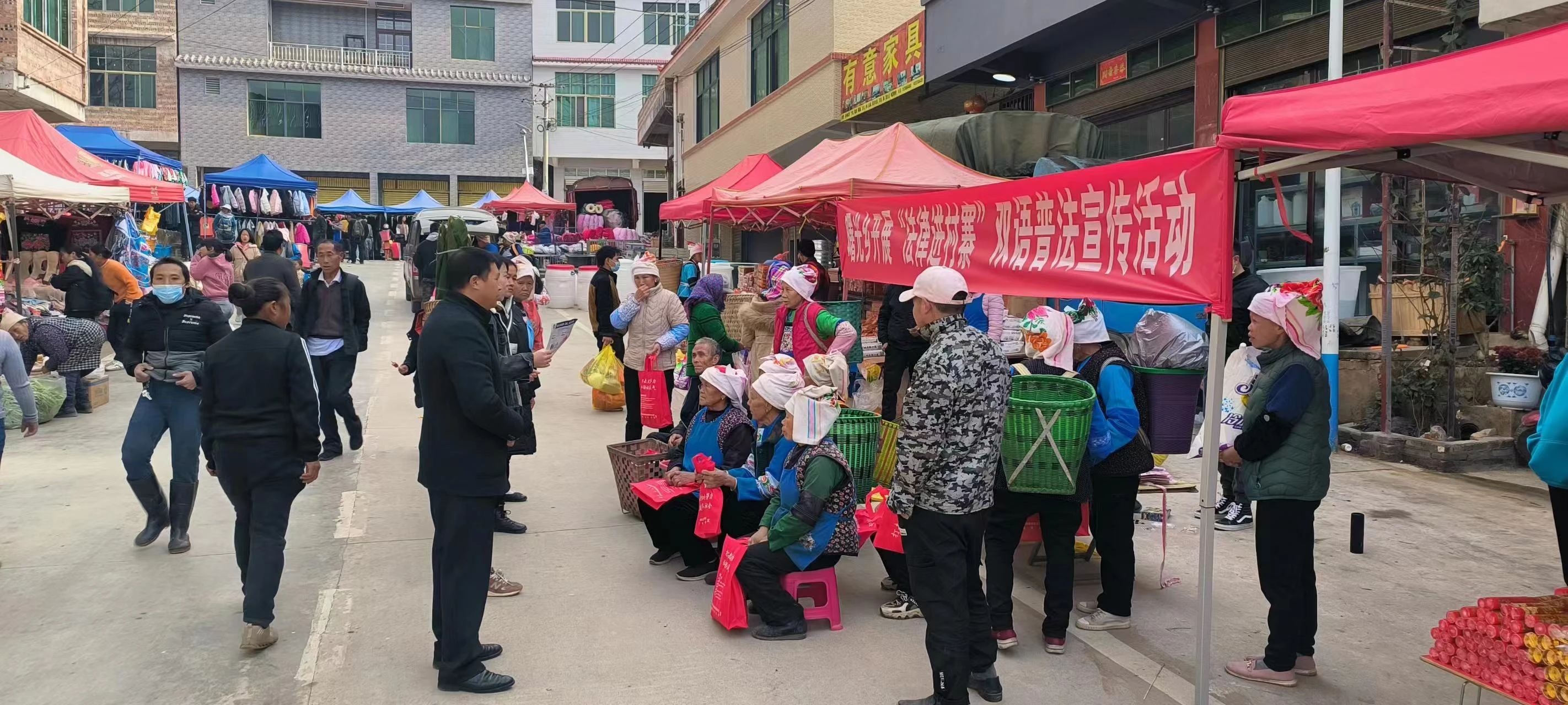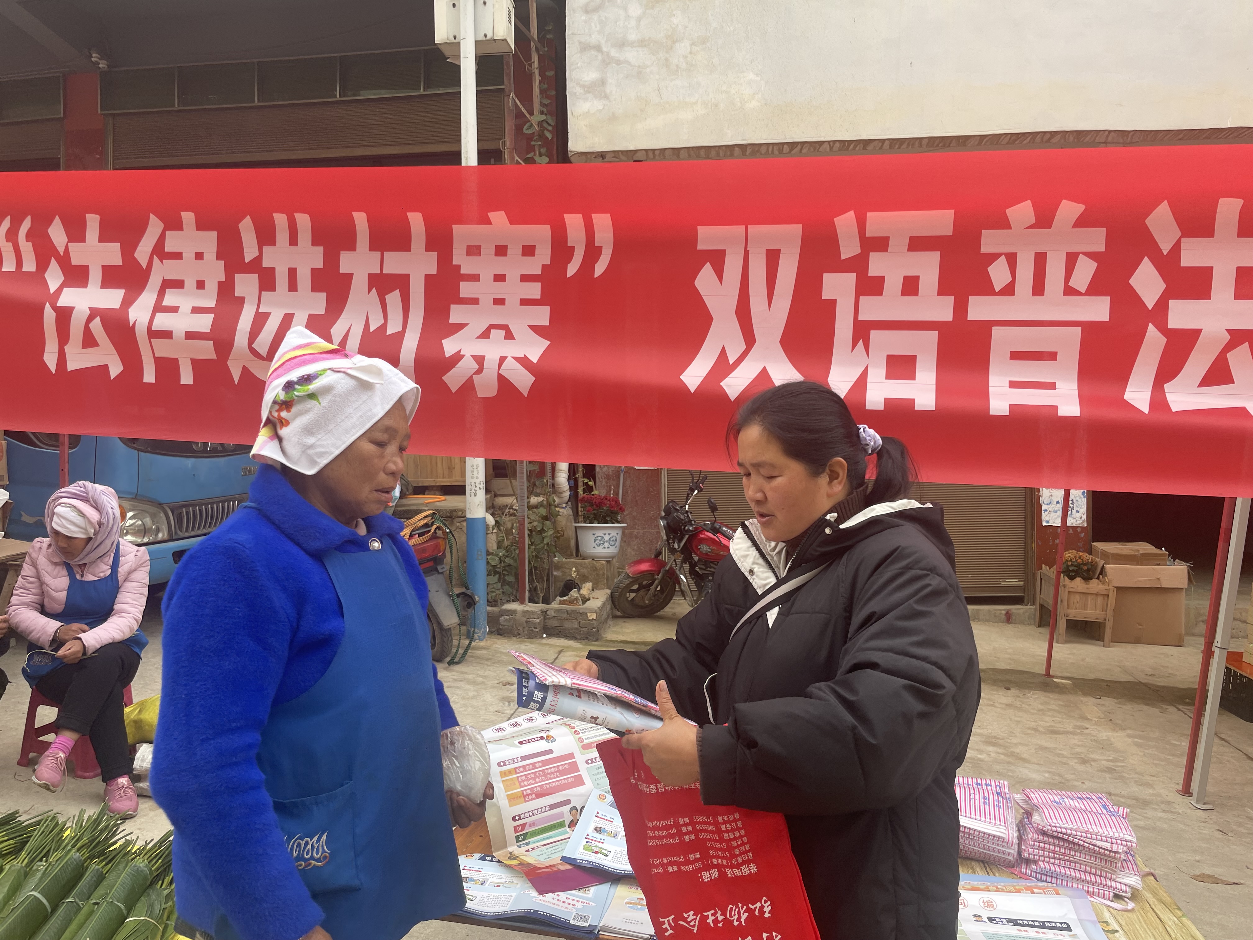 1月10日,广南县法学会组织乡综治办和司法所法学会会员、驻村工作队员、村“两委”干部组成的法治宣传小分队利用“赶集日”走进马堡村开展“送法进村寨”双语普法宣传活动,为基层群众送去“法治礼包”。