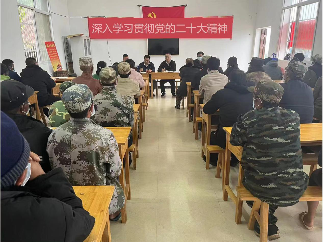 近日,孟连县委常委、政法委书记、县法学会会长石奋勇深入挂钩点南雅村大芒弄组宣讲党的二十大精神,三十余名县法学会理事会员到现场听讲。