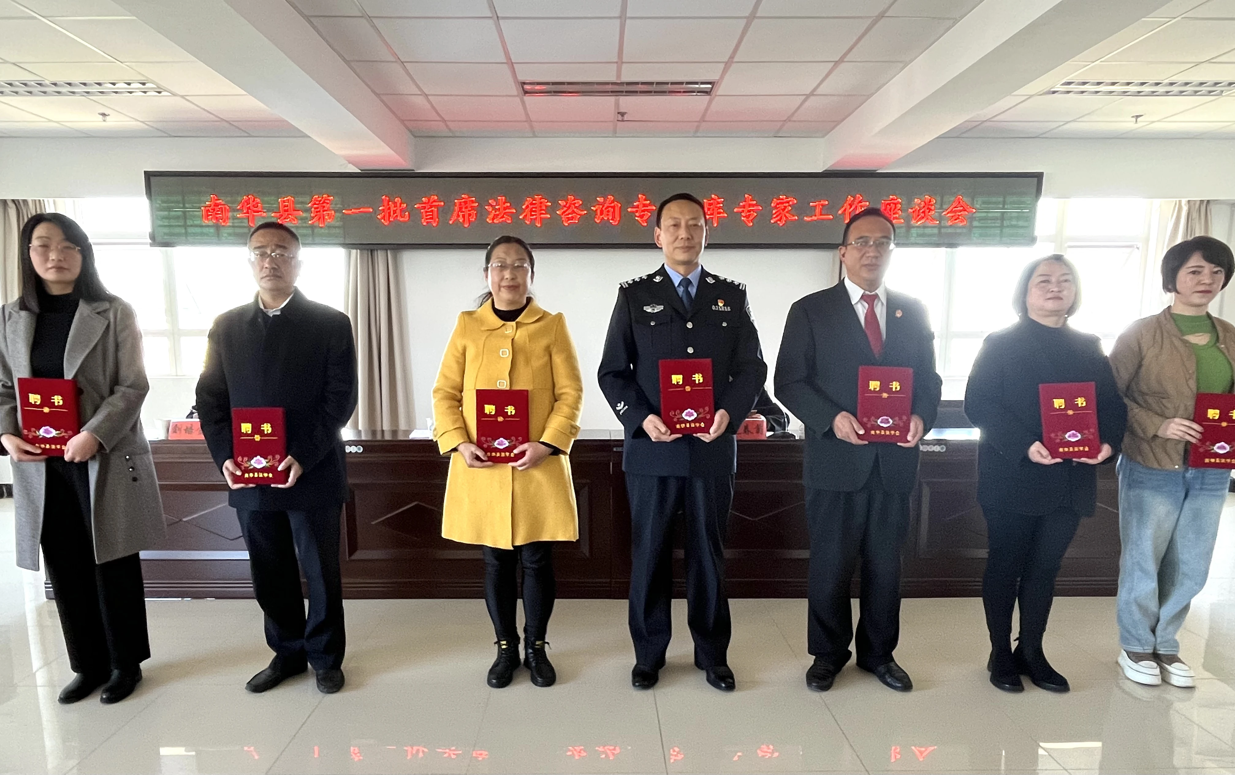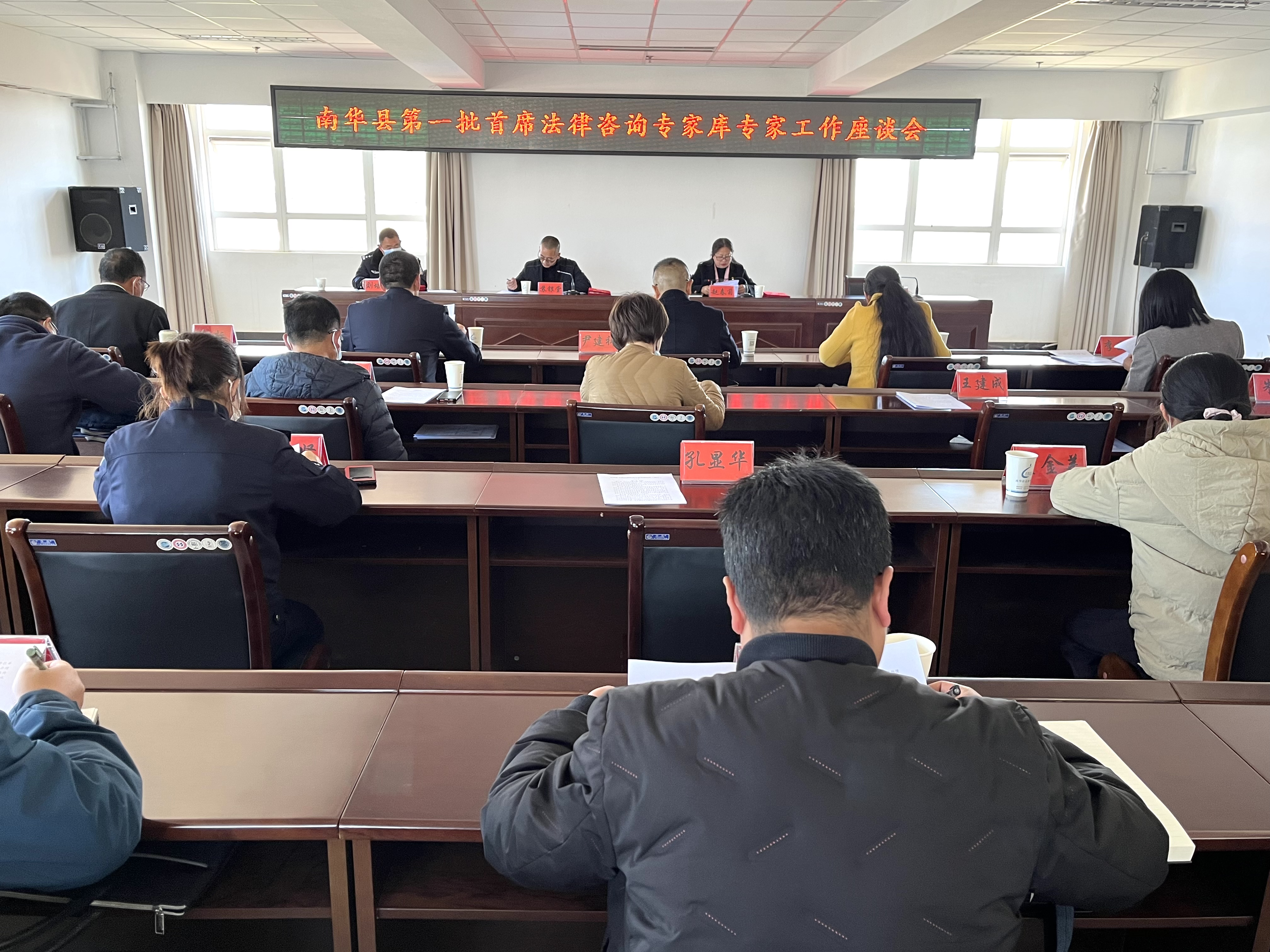 1月31日下午,南华县举行第一批首席法律咨询专家库专家聘任仪式暨座谈会,会议由县法院院长苏银堂主持,县检察院检察长赵春菊出席会议并讲话。县法学会常务副会长、副会长、秘书长、常务理事及首批聘任的首席法律咨询专家等20余人参加会议。