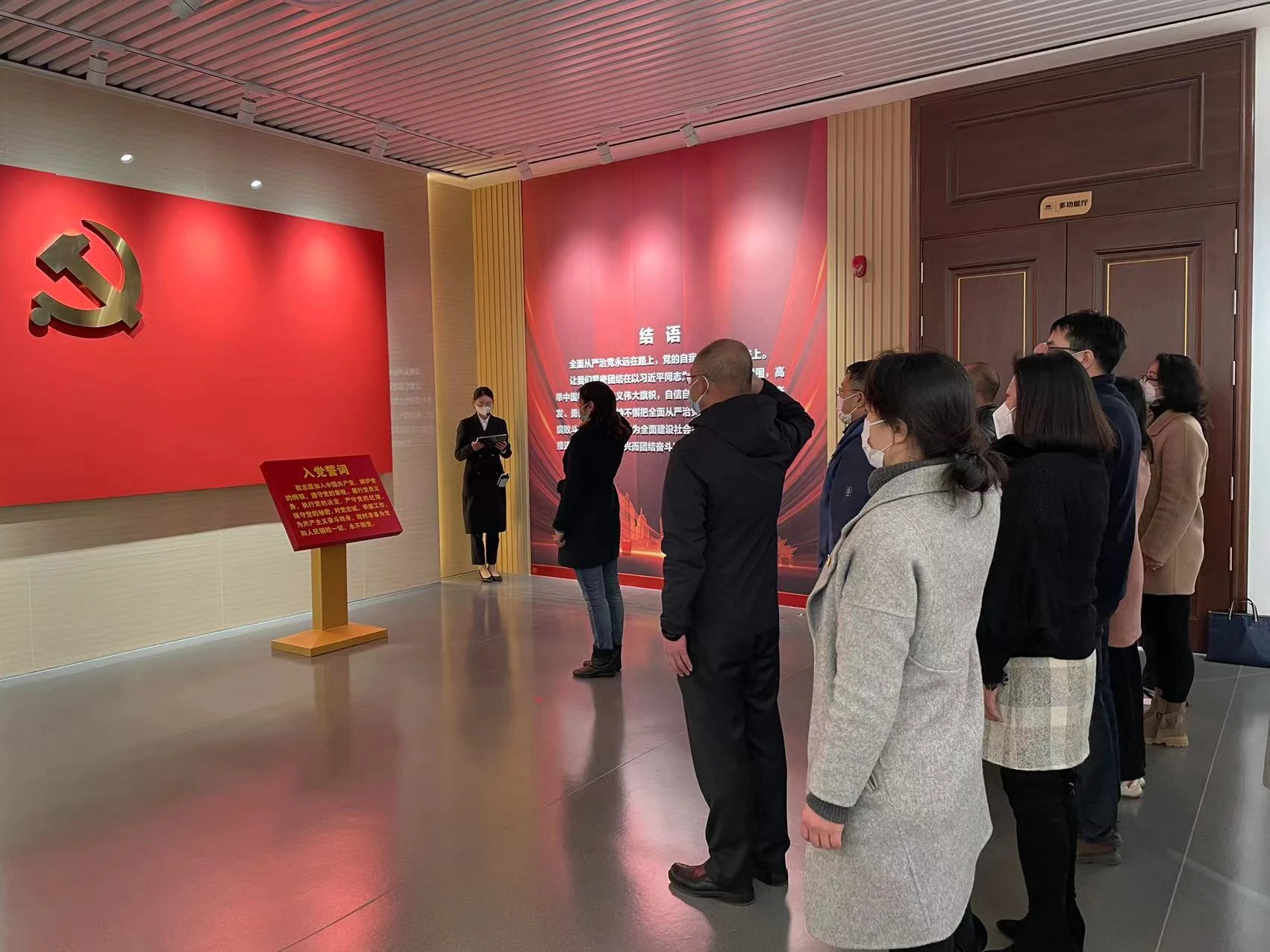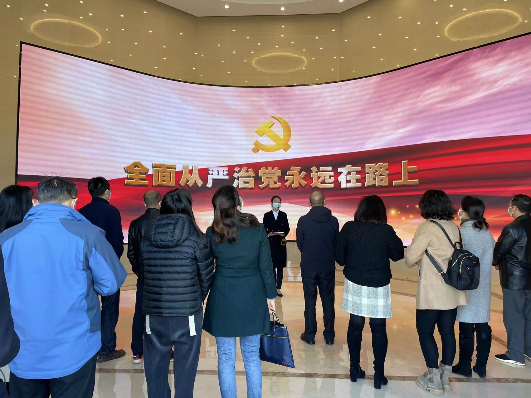 走进基地大门,墙壁上雕刻的是党百年奋斗的光辉历程,全体干部职工驻足瞻仰,崇敬之情油然而生。在讲解员的引导下,移步大厅,“全面从严治党永远在路上”十几个大字庄严地打在了屏幕上。讲解员从《中国共产党第一个纲领》讲起,直到党的二十大胜利召开,全面阐述了建党一百年来党对反腐倡廉的信心和决心,特别是党的十八大以来,以习近平同志为核心的党中央高度重视反腐倡廉工作,全国上下狠抓落实反腐倡廉工作,取得了历史性成效。响亮的警钟声开启了警示厅的参观,一个个违规违纪典型案例的解析,深刻揭示了“廉贪一念间,荣辱两世界”的前车之鉴。步入阳光厅,展示了党风廉政建设和反腐败斗争中取得的辉煌成就,学习了杨善洲、廖俊波等先进代表的感人事迹,激励着每一位参观者。参观结束后,全体党员重温入党誓词,感召每位党员不忘初心、砥砺前行。