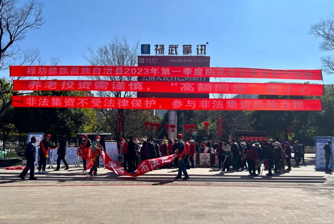 2月1日,昆明市禄劝县2023年一季度防范非法集资宣传活动在县城民族广场举行。县法学会、县金融办,以及全县各金融机构参加活动。
