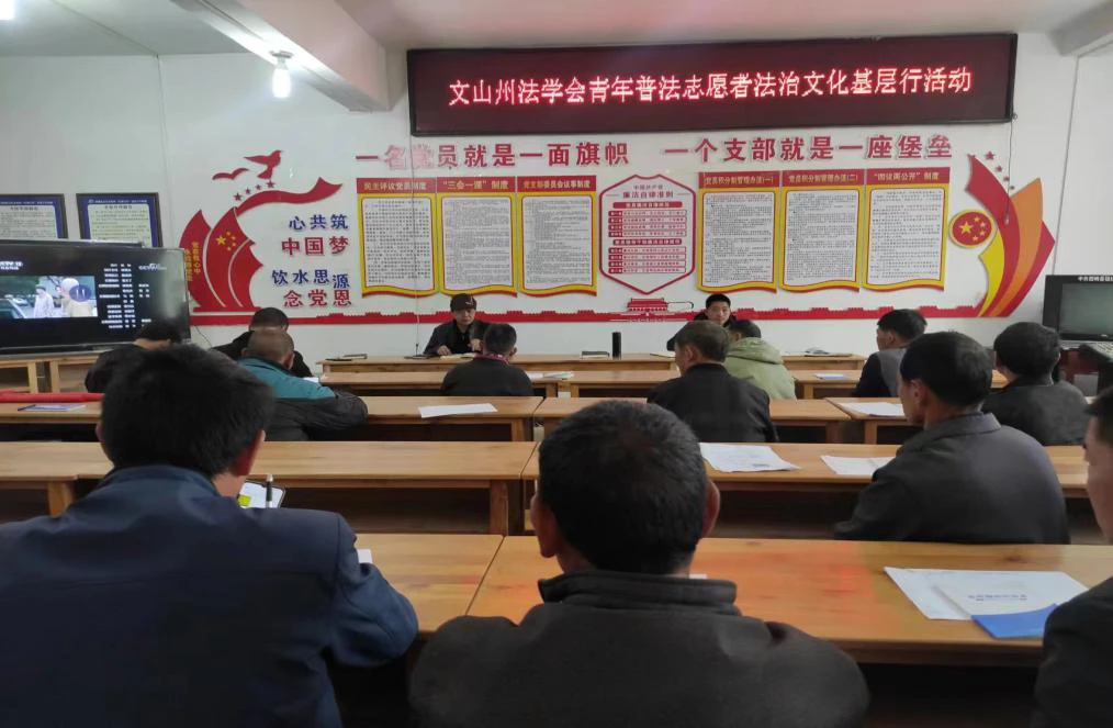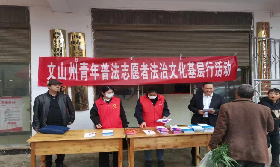 为认真贯彻落实《云南省 2023 年普法强基补短板专项行动方案》《文山州普法强基补短板六条措施》及相关部署要求,2月19日,文山州法学会深入西畴县兴街镇兴隆村委会,组织开展青年普法志愿者法治文化基层行活动。