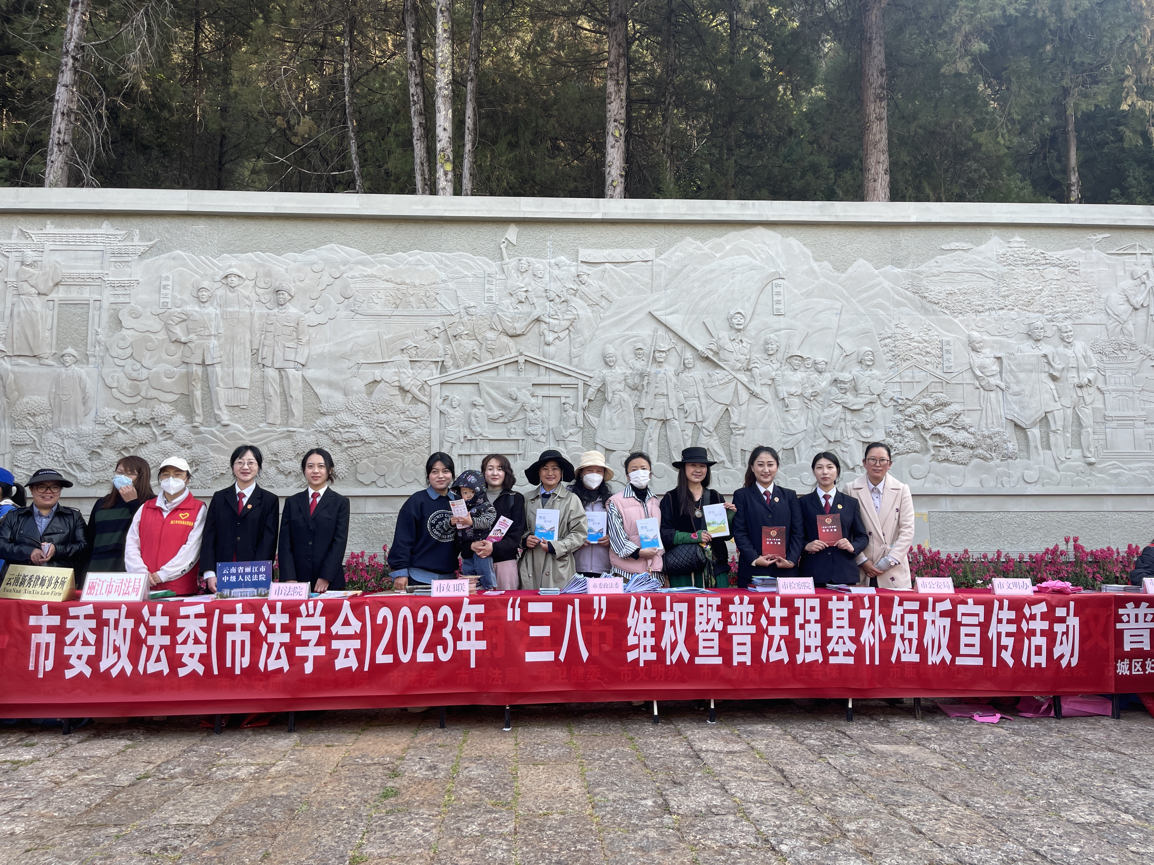 为提升妇女法治观念,切实增强妇女依法维权的意识和能力,结合当前“普法强基补短板”专项行动,在“三八”国际妇女节来临之际,市委政法委、市法学会全体女干部职工联合市妇联、市公安局、市检察院、市法院、市司法局、市妇联等相关单位在黑龙潭公园政德广场开展2023年“三八”维权暨普法强基补短板法治宣传活动。